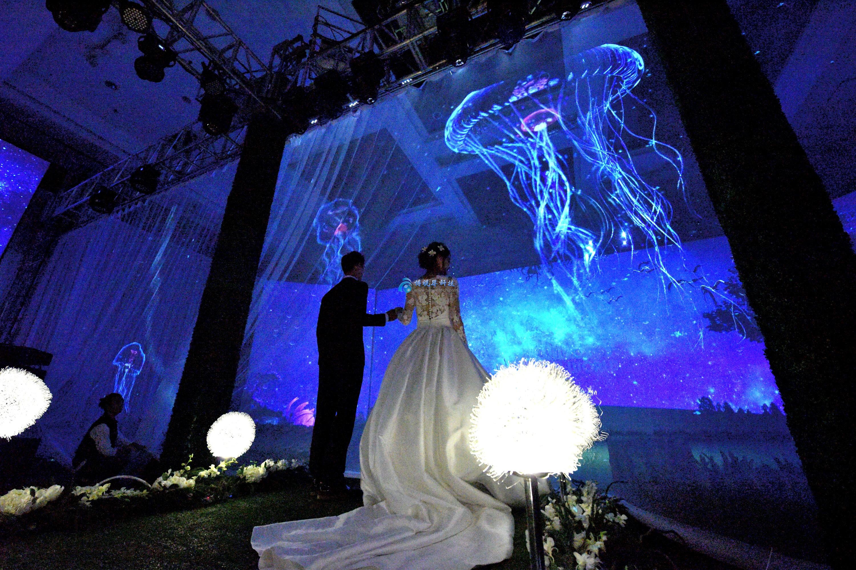 潮汕地區的婚姻習俗歷史悠久注重傳統,如何讓一場婚禮,擁有滿滿的儀式感,又有濃濃的詩情畫意?!在饒平的海港宴會城,由Sipa的5000流明、8000流明、12000流明激光投影經過精心組合,打造出的5D激光全息婚宴廳,讓你心隨所愿!
