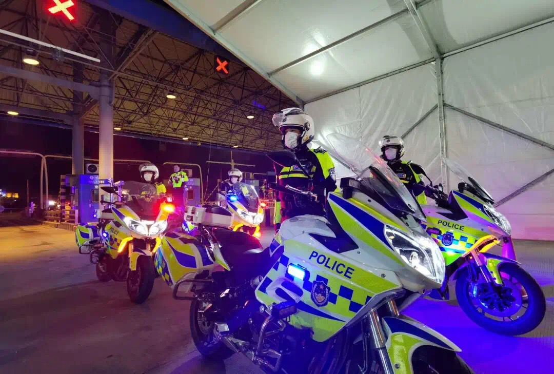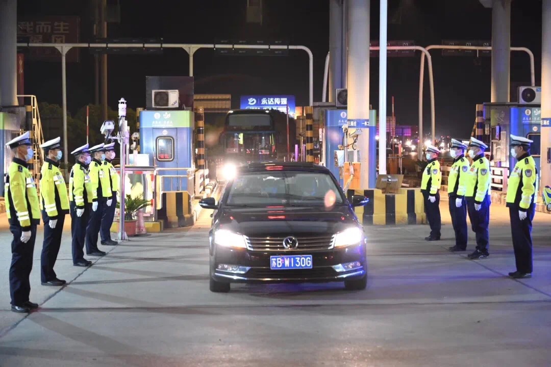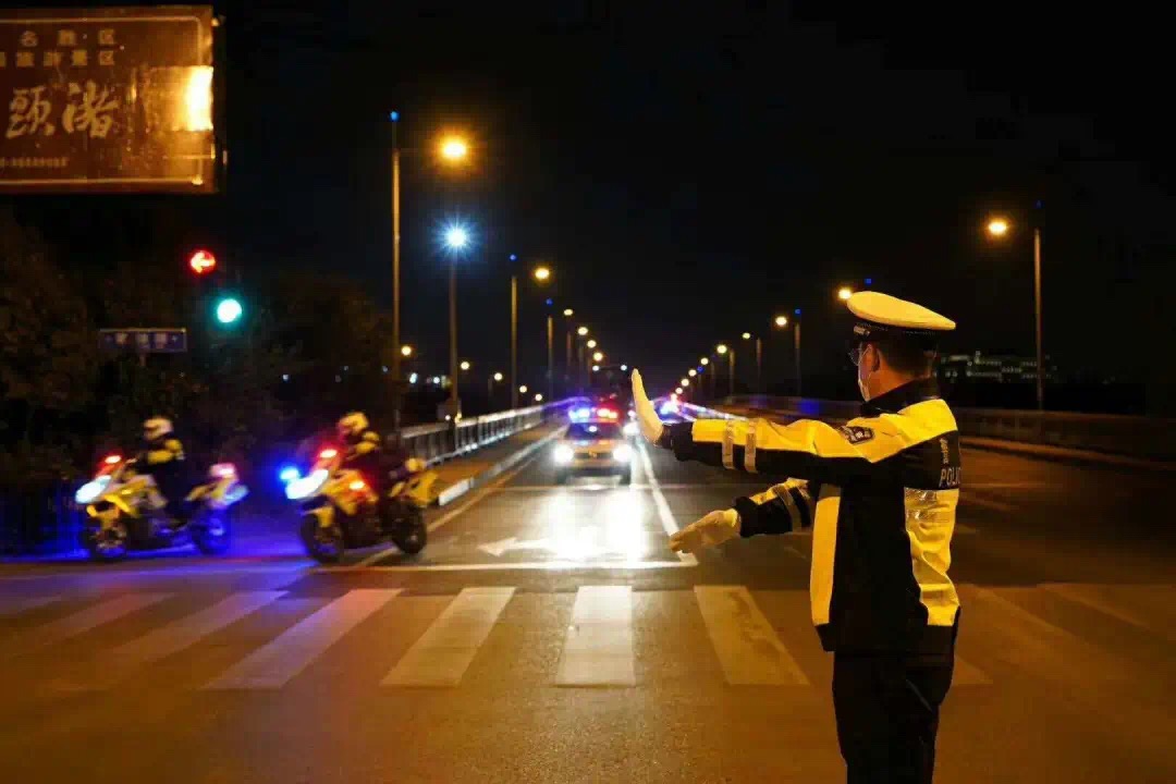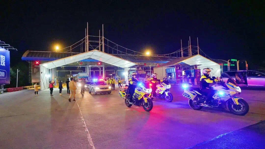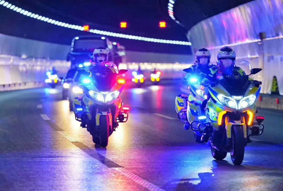 交警鐵騎列隊夾道相迎