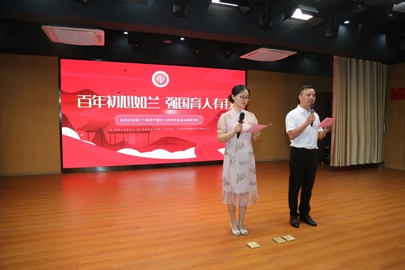 9月10日下午3點(diǎn),江陰市第一中學(xué)在校輔實(shí)樓二樓報(bào)告廳隆重舉辦了第37個(gè)教師節(jié)暨第七屆華蘭教師發(fā)展基金頒獎(jiǎng)慶祝典禮。