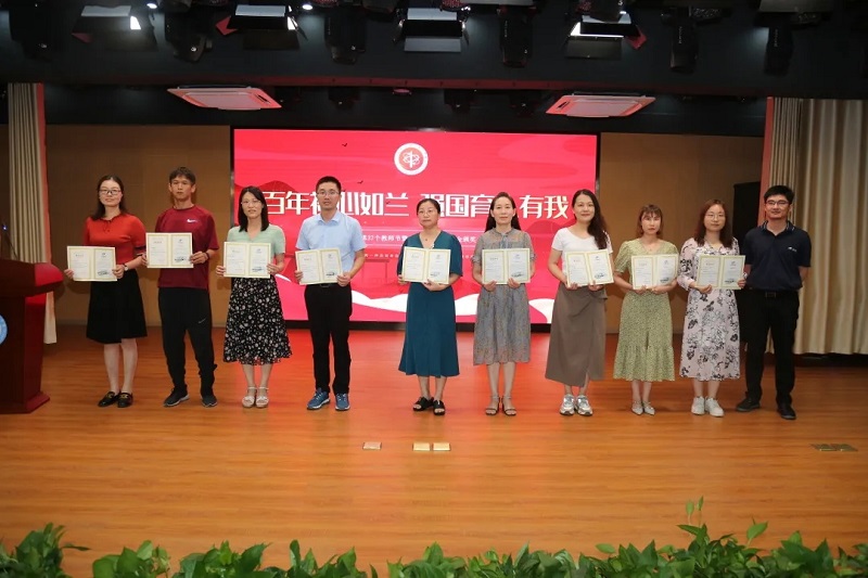 束紅偉副校長(zhǎng)宣讀了“三十年教齡功勛獎(jiǎng)、三十年教育園丁獎(jiǎng)”,江蘇華蘭藥用新材料股份有限公司董事長(zhǎng)華國(guó)平和李忠校長(zhǎng)一同為獲獎(jiǎng)老教師們頒發(fā)證書。