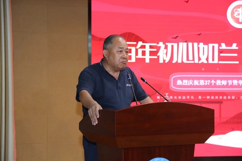 接著華國(guó)平董事長(zhǎng)上臺(tái),先深深鞠了一躬,表達(dá)對(duì)一線教師的敬重和感謝。感謝所有在教育的天地里默默守望的老師們。在講話中尤其是對(duì)奮戰(zhàn)在班主任崗位上的老師們由衷的敬意,表達(dá)了對(duì)老師們最誠(chéng)摯的祝福。接著他鼓勵(lì)大家做一名有家國(guó)情懷的人民教師。企業(yè)需要不斷優(yōu)化產(chǎn)業(yè),增強(qiáng)競(jìng)爭(zhēng)力,教育更需要每一位教育工作者勤于思考,提高課堂效率,因材施教,提升學(xué)校辦學(xué)品質(zhì)。華國(guó)平先生的發(fā)言誠(chéng)摯而充滿了力量,贏得了領(lǐng)導(dǎo)、老師們熱烈的掌聲。